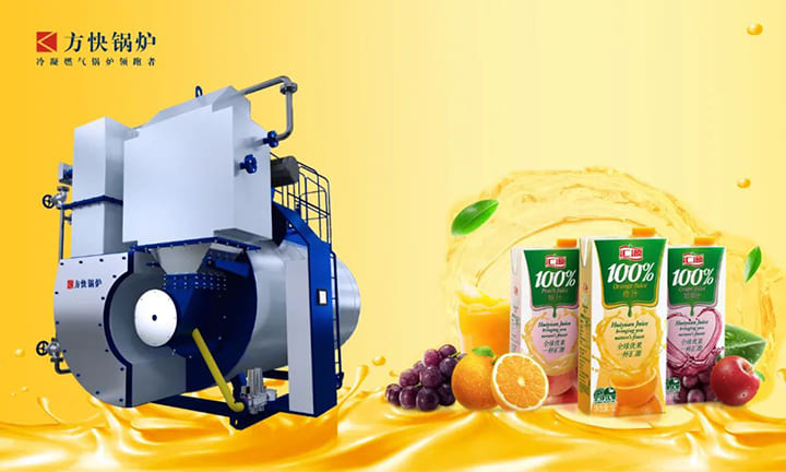 鍋爐是飲料生產(chǎn)過(guò)程中一項(xiàng)必不可少的設(shè)備,為蒸發(fā)濃縮、殺菌、無(wú)菌灌裝等多個(gè)工藝環(huán)節(jié)提供蒸汽,且蒸汽的穩(wěn)定性和品質(zhì)對(duì)濃縮果汁的純度、產(chǎn)量起著十分重要的作用。隨著天氣逐漸炎熱,各類飲品也已進(jìn)入了銷售旺季。為滿足市場(chǎng)需求,產(chǎn)線蒸汽供應(yīng)不足的問(wèn)題顯現(xiàn)。為響應(yīng)國(guó)家節(jié)能減排、環(huán)境保護(hù)工作,經(jīng)過(guò)多家鍋爐廠研究對(duì)比,匯源集團(tuán)對(duì)方快的低氮冷凝鍋爐充滿興趣。