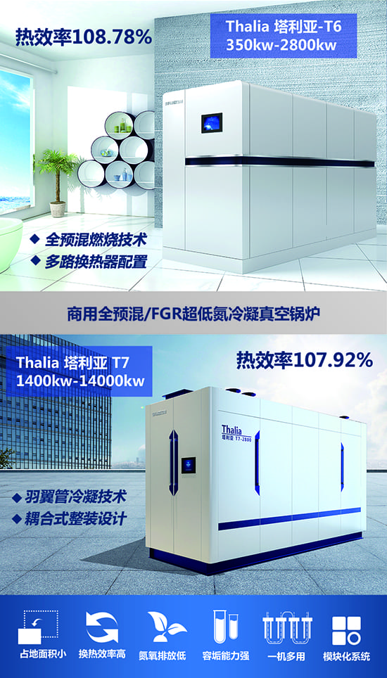 近年來,隨著技術的提升,真空熱水鍋爐的發展也逐漸加快,產生了許多優質的生產廠家。冷凝燃氣鍋爐領跑者、商用熱水解決方案專家 - 方快,憑借多年扎根熱水行業的經驗,注重技術革新,自主研發生產的超低氮全預混燃燒真空熱水鍋爐塔利亞 T6 、以及國內創新 FGR 燃燒技術的真空熱水鍋爐 T7 。其中塔利亞 T6 被列入國家工信部公布的《國家工業節能技術裝備推薦目錄( 2018 )》。