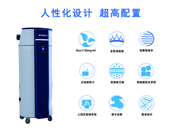 獨有的全預混燃燒系統,空氣與燃料進行預先混合,降低NOx、SOx等有害物質的排放。